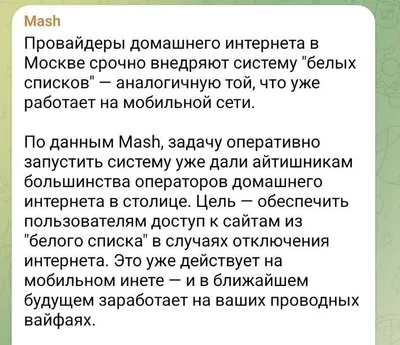 Белые списки накрыли и домашний интернет. Провайдеры в Москве массово и срочно внедряют систему, которая допускает только к ограниченному набору сайтов. При следующем шатдауне вероятно будет доступ