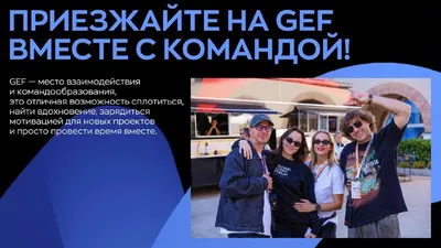 Приезжайте на GEF вместе с командой!💙 Это отличная возможность сплотиться, найти вдохновение, зарядиться мотивацией для новых проектов и просто провести время вместе. Именно такие события особенно ц