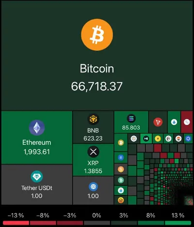 Ребят, всех с первым днём весны👋 Рынок вроде и зелёный, а портфель особо не растёт😅 Рыночная капитализация: $2,29 Т | 🔼4,53% Объем торгов: $106,49 B | 🔼4,02% 💵 = $66 692 💵 = $1 992 💵 = $