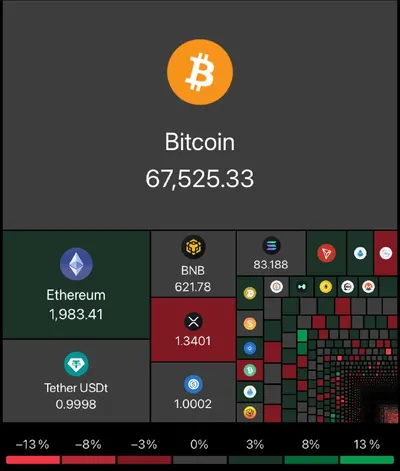 Всем GM 👋Утренний обзор рынка Рыночная капитализация: $2,30 Т | ↓0,18% Объем торгов: $88,88 B | ↓54,63% 💵 = $67 508 💵 = $1 982 💵 = $621 Доминирование BTC: 58,39% Индекс сезона альткоинов: 3