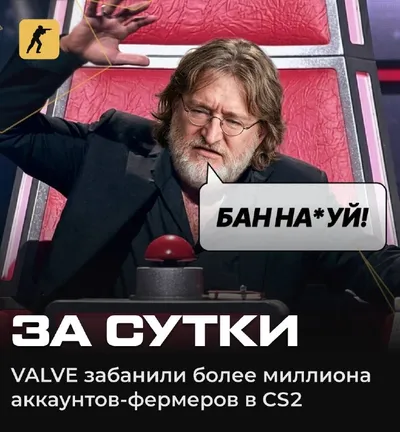 🙂 Габен взялся за жопы фермеров! Только за последние сутки более 1.000.000 аккаунтов отлетело в бан — это почти рекорд! Твой кореш-темщик оценит эту новость @GO_CS