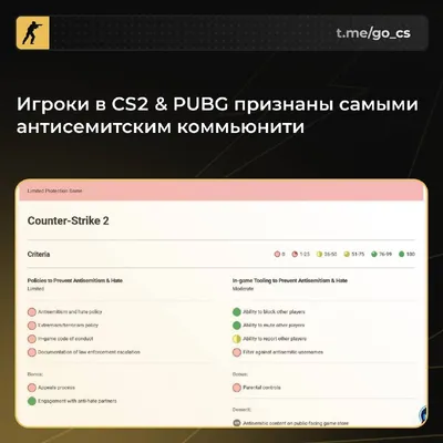 🤯 CS2 & PUBG признаны самыми антисемитскими играми Еврейская организация ADL спалила рейтинговую таблицу по уровню антисемитизма в играх Наименьший рейтинг защиты Евреев оказался в CS2 & PUBG, а са