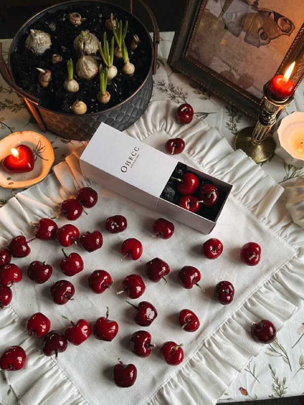 Хотелка дня — свечи в виде черешни 🍒 Нашли такие в каталоге мастерской из Уфы Oneness candles. Набор из 8 штук стоит 1100₽. Кажется, они эффектно украсят белоснежный тортик на день рождения.