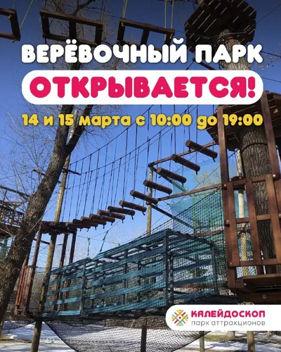 В «Калейдоскопе» открывается веревочный парк (6+) 📅 14 и 15 марта с 10:00 📍Белгород, ул. Корочанская, 43В 💵 уточняйте у организаторов Вас ждут шесть верёвочных маршрутов разной сложности. Трассу