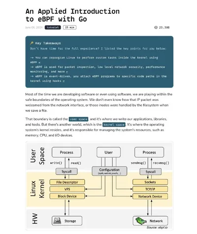 ⚡️ Практическое введение в eBPF: как это работает и зачем это Go-разработчику eBPF - это способ запускать свой код прямо внутри ядра Linux, не трогая само ядро и не собирая модули. Ты получаешь д