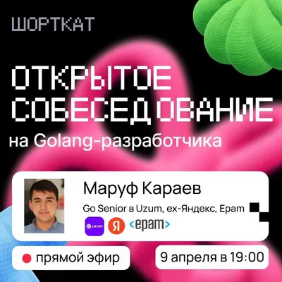 🔍Тестовое собеседование с Go Senior из Uzum в этот четверг 9 апреля(в четверг!) в 19:00 по мск приходи онлайн на открытое собеседование, чтобы посмотреть на настоящее интервью на Middle Go-разработч