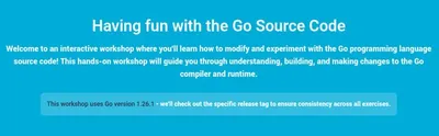 Интерактивный воркшоп, на котором вы научитесь модифицировать и экспериментировать с исходным кодом языка программирования Go https://jespino.github.io/having-fun-with-the-go-source-code-workshop/ �