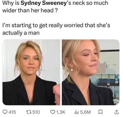 ❗️ СИДНИ СУИНИ — МУЖЧИНА*! Такая теория заговора сейчас вирусится в англоязычном медиа пространстве. Пользователи сети сравнивают фото Сидни, утверждая, что она совершила транс*-переход. По их мнен
