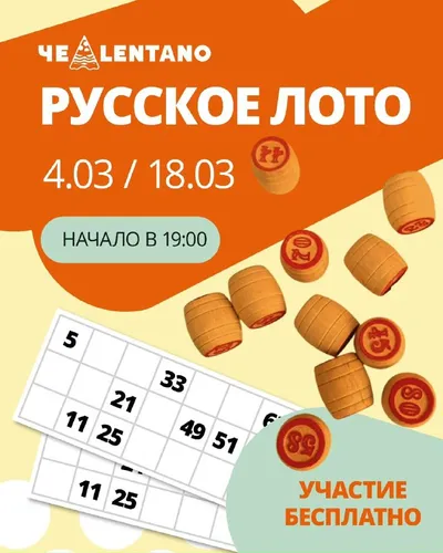 Челентано делится планами на март 🌷 💫 4 и 18 марта — русское лото, начало в 19:00, участие бесплатное 💫 Каждое воскресенье — кулинарные мастер-классы, начало в 11:00 💫 15 марта - шаурма мяс