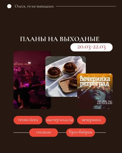 ПЛАНЫ НА ВЫХОДНЫЕ 20-22.03 Вкусно едим и совмещаем со спортом👇🏻 Ураза-байрам 📍Недальний Восток (Баррикадная) День тирамису 📍skrepka (Китай-город) Pizza run party 📍адрес высылают при регистрации