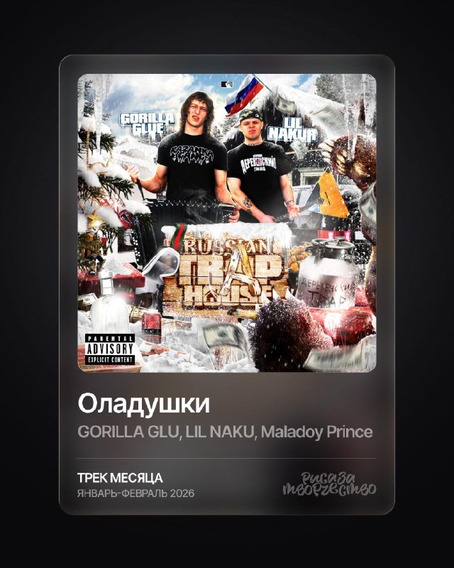 GORILLA GLU, LIL NAKU, Maladoy Prince - Оладушки — Трек Январь-Февраль 2026 🥇GORILLA GLU, LIL NAKU, Maladoy Prince — Оладушки 3449 голосов 🥈madk1d, VILLIAN — 8 миля 2932 голосов 🥉Платина — Гика