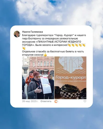ПутешествияТуроператор новых впечатлений по Самаре и РФ🌅 Менеджер в тг: @gorod_kurort_manager Наш сайт: https://gorod-kurort.com/ Группа школьных экскурсий: https://t.me/gorod_kurort_school По любым вопросам: 89370797347 РКН: https://vk.cc/cOZdkx