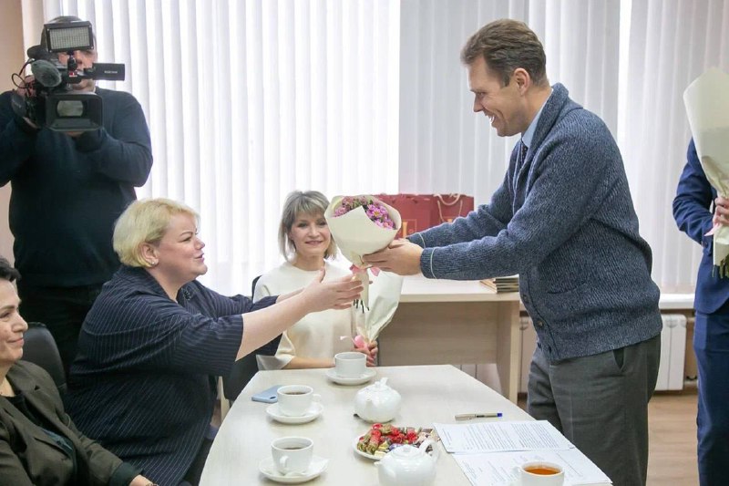 Глава Коломны вместе с депутатом Госдумы Никитой Чаплиным поздравил активисток Общественной палаты с наступающим праздником За чашкой чая поговорили о благоустройстве, инклюзивных проектах и, судя по
