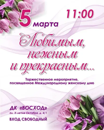 💗Торжественное мероприятие, посвященное Международному женскому дню состоится 5 марта в ДК «Восход». 📲Город Вольск в MAX!