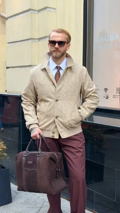 Какой образ, собранный мной из новой коллекции HENDERSON, вам нравится? 1. Образ на основе бомбера Бомбер Сорочка Брюки Сумка Галстук 2. Стильный сэт куртка с брюками Куртка Платок Брюки Поло Рюкза
