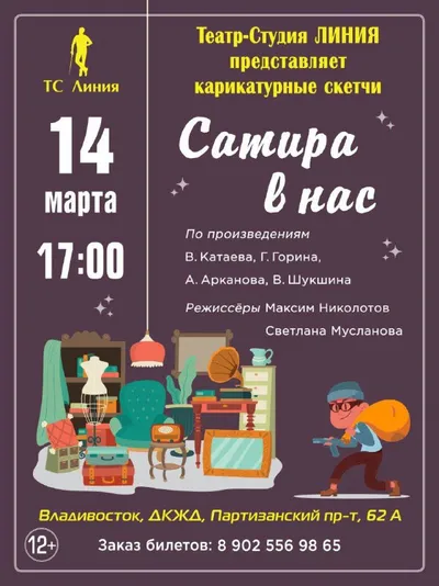 ⚡️️️️ КОНКУРС 2 билета на спектакль «Сатира в нас»! 14 марта в 17:00 в ДКЖД (Партизанский пр-т, 62А) театр «ЛИНИЯ» представит пять миниатюр по произведениям Арканова, Катаева, Горина, Шукшина. Остры