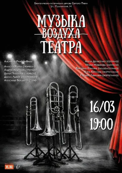 ⚡️ КОНКУРС Дарим 2 билета на концерт ансамбля тромбонистов PrimLowBrass! 16 марта в 19:00 в Лютеранской церкви Святого Павла состоится концерт «Музыка театра». Вы услышите золотые номера и любимые