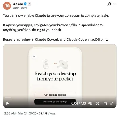 Сегодня Anthropic фактически похоронил OpenClaw. Плохие новости для адептов OpenClaw, особенно для тех, кто уже закупился маками. Claude получил крупное обновление: теперь он умеет открывать приложе