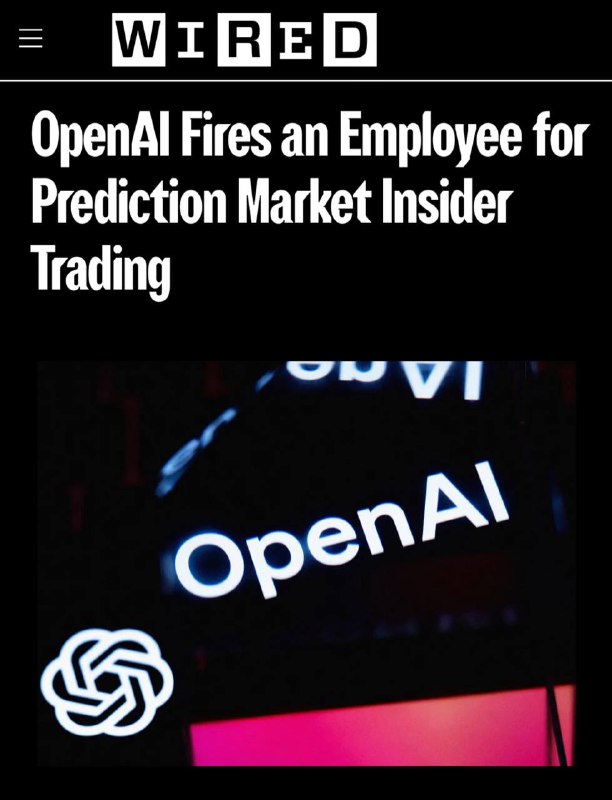 OpenAI уволила сотрудника за ставки на события, связанные с компанией. По данным WIRED, он использовал внутреннюю информацию, чтобы зарабатывать на таких прогнозах. Независимые аналитики заметили стр