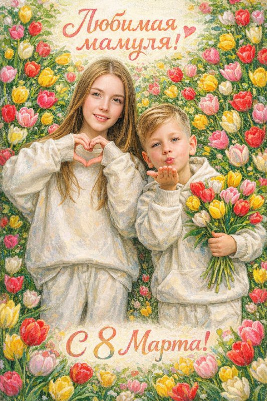 #GPTпромпт: Поздравляем любимых и неповторимых! Берём фото, где чётко видно лицо и создаём трогательные открытки в стиле масляной пастели. ❤️ GPT Image в нашем боте сделает это за пару минут: 1.