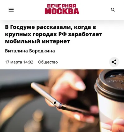 ⚡️ Мобильный интернет может вернуться в крупные города в течение одной–двух недель, сообщили в Госдуме. Депутат Свинцов заявил, что проблемы с интернетом в крупных городах — это следствие «пусконалад