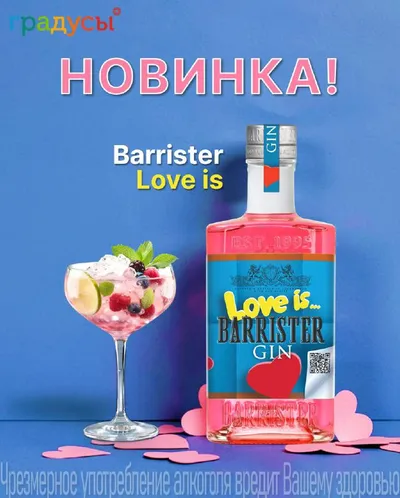 💕День всех влюблённых прошёл, но любовь ведь не заканчивается одним праздником, правда? 🤩Встречайте долгожданную НОВИНКУ в Градусах! Джин Barrister "Love is"💕 🍓Легендарный аромат жвачки Love is