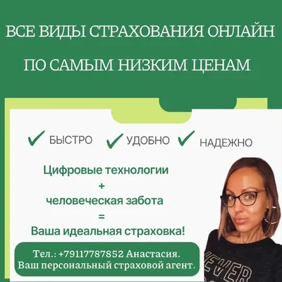 Ваша страховка- там, где вам удобно! Забудьте об очередях! Все виды страхования- не выходя из дома. 📱 Пришлите фото документов в сообщения ⚡️ Через 15 минут получите полис на почту 💬 Ваш персонал