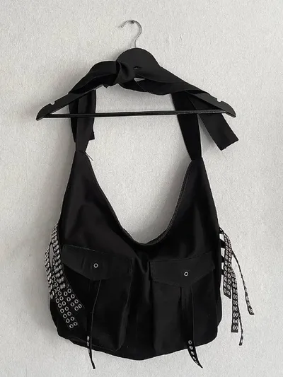 готическая сумка ручной работы в стиле Gothicana / Tripp NYC сумка изготовлена из плотного хлопка на каждой стороне по 4 лямки, украшенной люверсами. два вместительных кармана с клапанами. на клапана