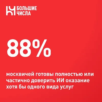88% москвичей готовы полностью или частично доверить ИИ оказание хотя бы одного вида услуг 🗒 Данные исследования, проведенного столичным Департаментом информационных технологий, показывают высокий