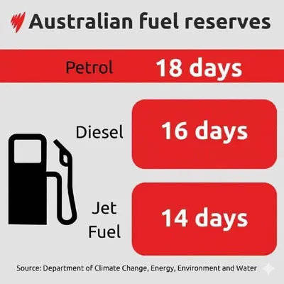 У Австралии запасов бензина осталось всего на 18 дней, дизельного топлива — на 16 дней, а авиационного топлива — на 14 дней из-за конфликта на Ближнем Востоке, заявил министр энергетики страны. @green