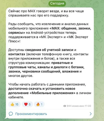 Госмессенджер Max взломан — софт МКО Система может извлекать из устройства контакты, чаты, каналы, боты, черновики и вложения; одним из клиентов компании является государство. @green_fnt