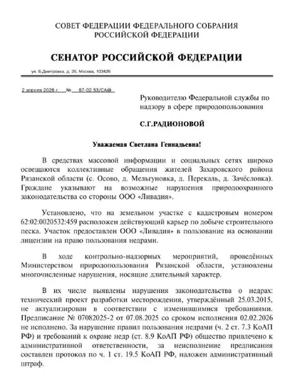 📣 Сенатор от Рязанской области попросил главу Росприроднадзора вмешаться в ситуацию с отходами в селе Осово. Сенатор Сергей Аноприенко направил обращение руководителю Федеральной службы по надзору в