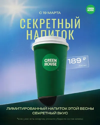 Еда и кулинарияРегулярно дарим бонусы! 126 кофеен! 21 город! Клуб GH: https://t.me/GreenHouseClubBot Каждый день варим кофе, как ты любишь💚 Канал зарегистрирован в реестре: https://clck.ru/3Eq6Ym