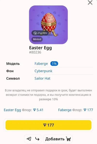 Самое дешевое яйцо Faberge🎁 сейчас стоит 177 TON на MRKT. Совсем недавно флор был 60 TON и считался оверпрайсом. ➖➖➖➖➖➖➖➖➖➖➖ ⭐️Купить звезды дешево ❤️Купить TON без верификации