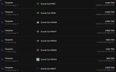 ПАМП ЧЕРНЫХ КОТИКОВ! Этой ночью кто-то выкупил на GetGems сразу 7 🐈⬛ Scared Cat на черном фоне на сумму 14 000 TON (16 850$)! 🔼 Флор на котиков на черном фоне поднялся уже до 3 000 TON (3 600$)!