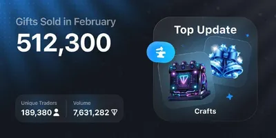❤️Статистика Portals за февраль: 🎁Продано подарков - 512 300 шт 🙂Уникальных трейдеров - 189 380 📊Объем торгов - 7 631 282❤️ 🏆Топ продажа - PlushPepe-88 за 55 000❤️ Также Portals убрали функцию B