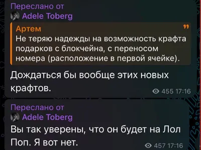 😭 КРАФТА НА ЛОЛ ПОПЫ НЕ БУДЕТ? Adler Toberg намекнул, что новых крафтов в ближайшее время мы вряд ли увидим, и что это точно будет не 🍭 Lol Pop. ➖➖➖➖➖➖➖➖➖➖➖ ⭐️Купить звезды дешево ❤️Купить TON без