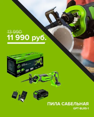 Иногда один инструмент экономит кучу времени — сейчас Greenworks GPT-BLRS-1, 24V (1200607CUB) ещё и не просит за это лишнего. ⚡️ Режет дерево, металл, пластик и даже древесину с гвоздями ⚡️ Бесщёточн