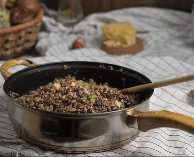 Некрасовская каша (гречневая каша с белыми грибами и пармезаном) гречневая крупа - 400 г белые грибы (шампиньоны) - 400 г сливочное масло - 100 г репчатый лук - 1 шт. растительное масло - 100 мл соль