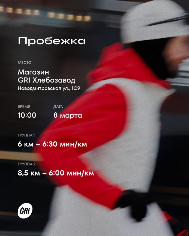 Зима в прошлом, а пробежки из магазина GRI продолжаются! Этой весной встречаемся каждое воскресенье. Провели холодное время года в зале, манеже или дома на диване? Вот и повод выйти на улицу! Бегали