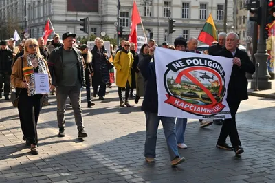 ⚡️⚡️⚡️Жители Вильнюса протестуют против полигона на границе с Беларусью Несколько десятков человек вышли на акцию против вырубки лесов для строительства полигона в Капчяместисе. ➡️Участники прошли м