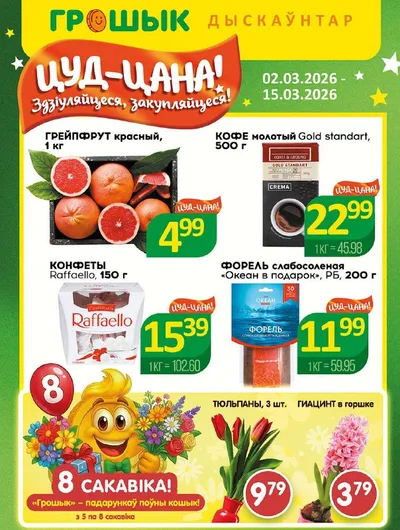 Весна врывается в «Грошык» с НОВОЙ ЛИСТОВКОЙ!🌸 Готовимся к праздникам вместе! Мы собрали полезные товары, чтобы вы могли порадовать любимых по выгодным ценам: 🌷 Цветы для настроения: тюльпаны - 9,