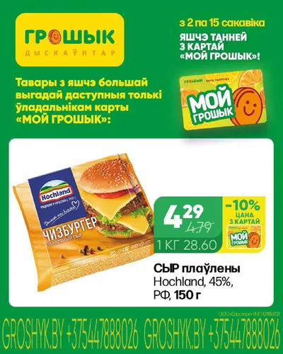 ПродажиОфициальный канал дискаунтера «Грошык». Скачивайте приложение «Мой Грошык» и экономьте с «Цуд-цаной!»! https://onelink.to/867fxy. Шок-цены, в которые сложно поверить! Вы будете удивлены, как много можно сэкономить. Мы удивимся, если вы найдете цены меньше