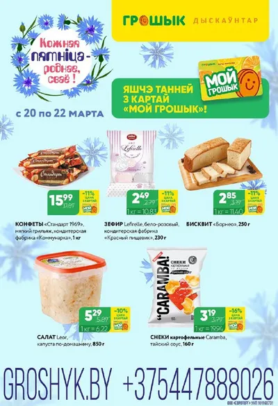 КОЖНАЯ ПЯТНІЦА – РОДНАЕ, СВАЁ! 🇧🇾 С 20 по 22 марта выбираем проверенное качество и экономим семейный бюджет 🇧🇾 С картой «Мой Грошык» еще выгоднее! 💳 🔥 Конфет «Стандарт 1969» мягкий грильяж, к
