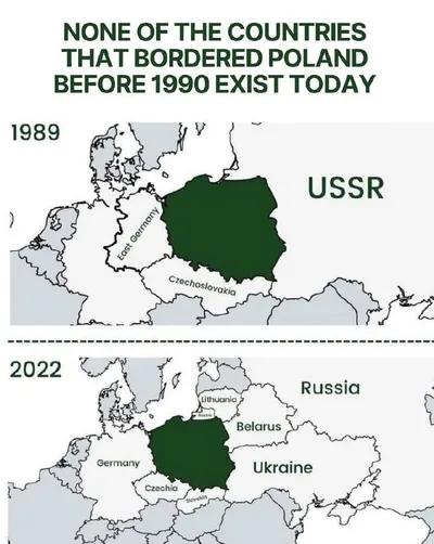 Польша Стронг. Ни одна из стран, с кем граничила Польша в 1989, не существует сегодня. И не говорите, что дело не в Польше. Будем надеяться, что к 2031 исчезнет ещё парочка. Но только не Калининг