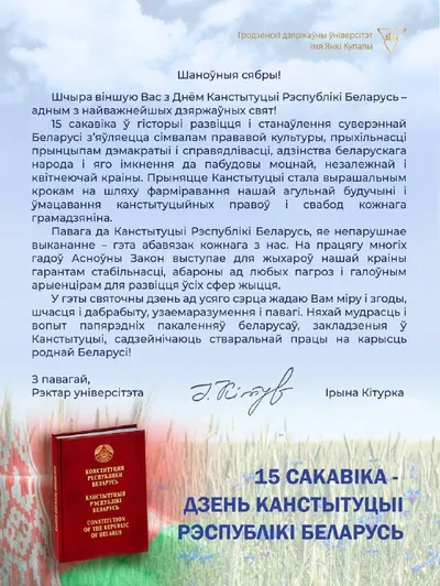 ВІНШАВАННЕ РЭКТАРА ІРЫНЫ КІТУРКА З ДНЁМ КАНСТЫТУЦЫІ РЭСПУБЛІКІ БЕЛАРУСЬ🇧🇾❤️
