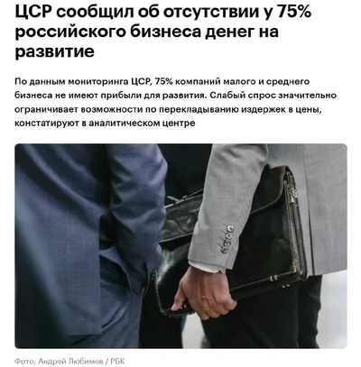 75% малого и среднего бизнеса говорят, что прибыли на развитие нет. Об этом нам сообщает мартовский мониторинг Центра стратегических разработок, опубликованный в РБК. Вдумайтесь в динамику: в феврале