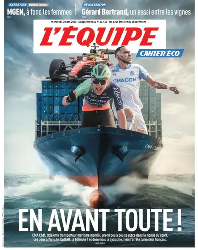 Новая обложка L'Equipe. Поль Сексас на грузовом судне отправляется на Strade Bianche, чтобы там сразиться с Погачаром. В эту субботу. Не пропустите 😎