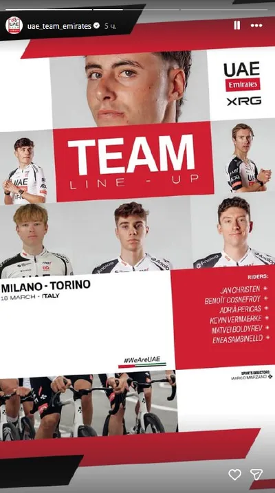 18-летний Матвей Болдырев завтра стартует в основе UAE Team Emirates — XRG на классической однодневке "Милан — Турин" 🔥 На прошлой неделе Матвей (крайний слева в нижнем ряду на картинке) был лучшим