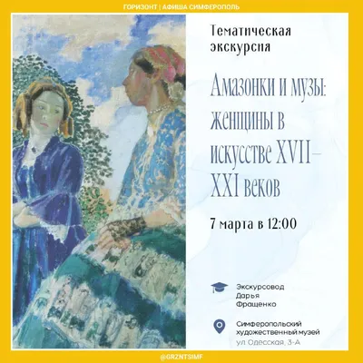 🌷 Тематическая экскурсия «Амазонки и музы: женщины в искусстве XVII–XXI веков» • 7 марта, 12:00 • Художественный музей • Одесская 3А Экскурсия объединит произведения постоянной экспозиции и выстав